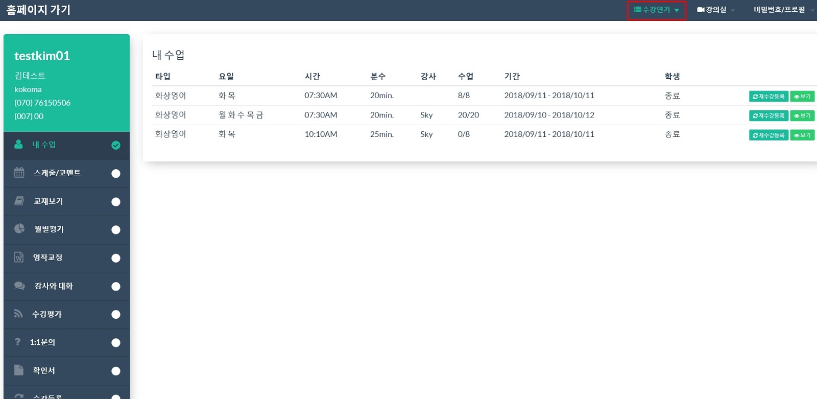 * 셀프 수강연기는 수업 10분전까지 접수가능 (수강연기 횟수를 초과하여 신청하는 경우 클릭안됨)